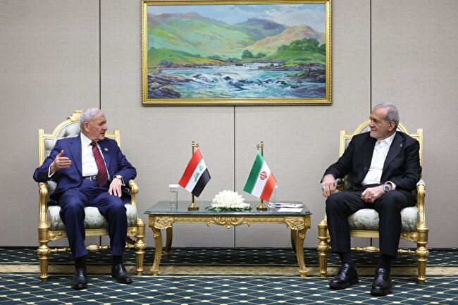 پزشکیان: تکمیل پروژه ریلی بصره-شلمچه از اولویتهای اصلی ایران برای گسترش روابط با عراق است/ رئیس جمهور عراق: ایران مهمترین همسایه است و امنیت ما بهم گره خورده است + فیلم